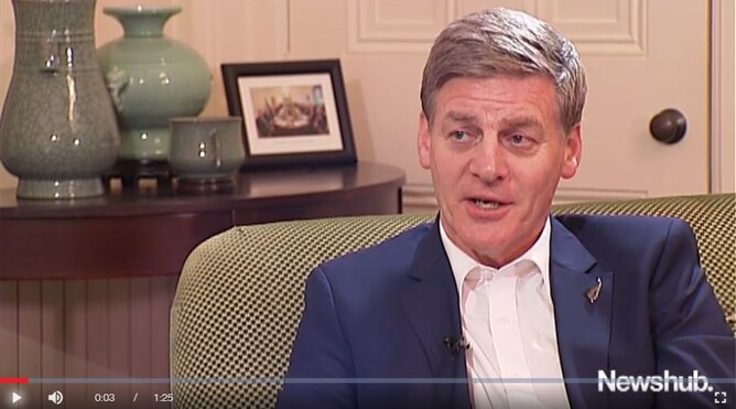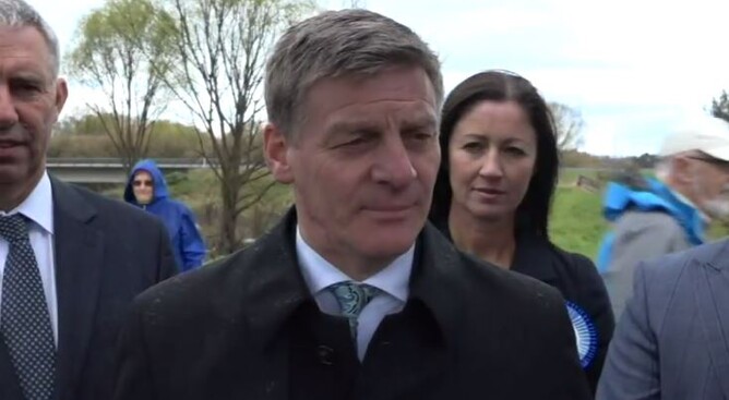 And, while all this was happening, where was Jacinda’s number 1 rival, Prime Minister Bill English? TVNZ showed him standing in a field in a black coat, surrounded by grey people dressed (you guessed it) in grey, next to a road in the middle of nowhere on a grey day with four people in shot, one of whom looks like he/she is going for a ‘scary photobomb shot of the year’ contest: