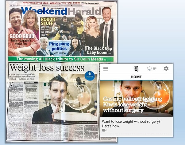 So great to see our client MacMurray Centre dominating the NZ Herald's front page and top story online on Saturday. They're doing amazing work to help people lose weight through a non-invasive procedure, and it is well worth taking a look at the video in the article online: