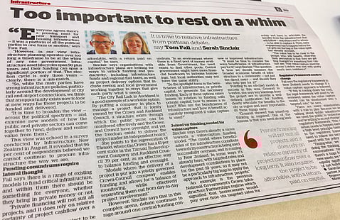 Great to see our client Minter Ellison Rudd Watts talking in the New Zealand Herald today (26 October 2017) about ways to meet and fund the many infrastructure challenges we face in NZ. MERW partners Tom Fail and Sarah Sinclair demonstrating their insightful perspectives, as ever: